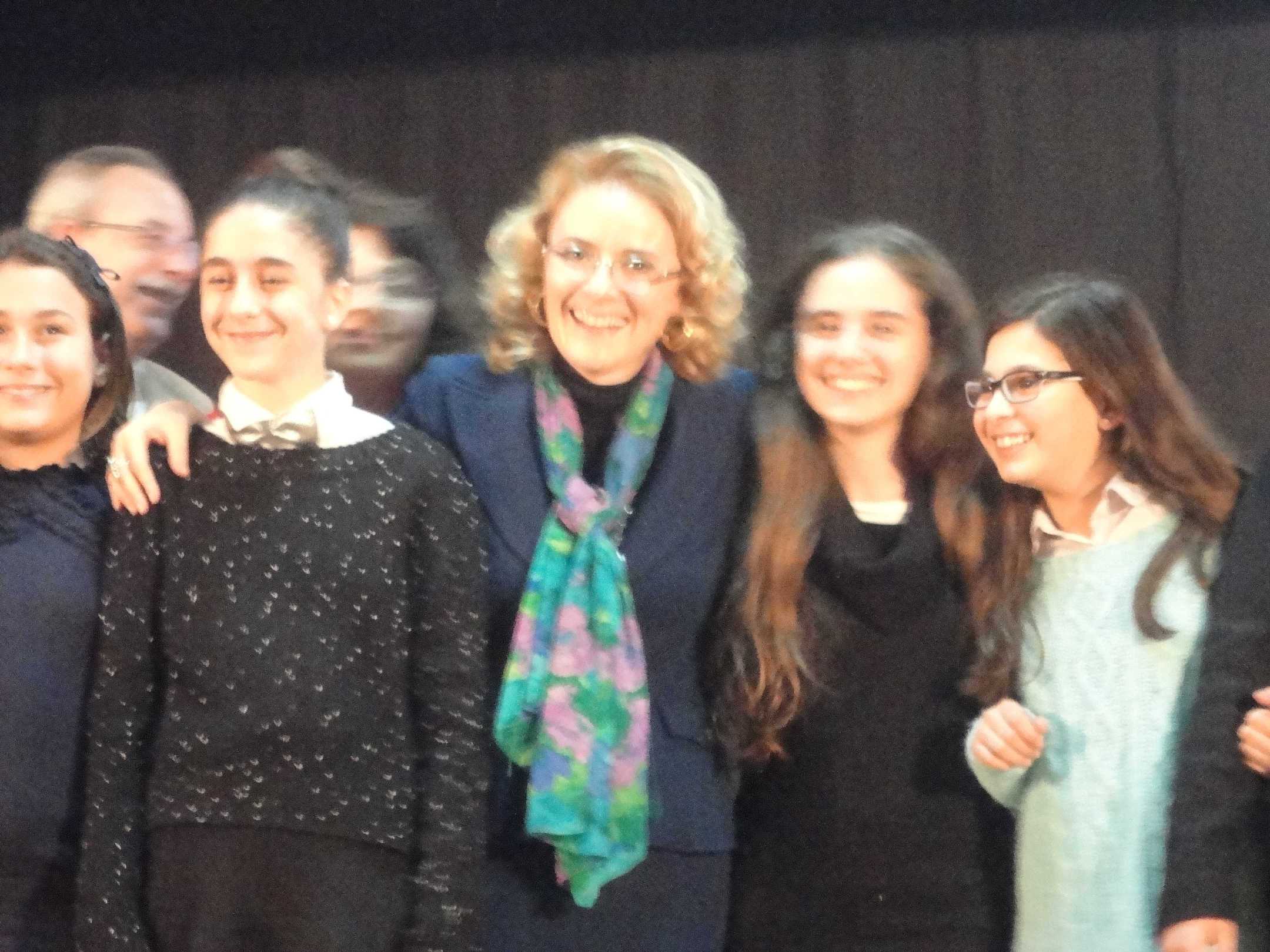 - La professoressa Emmi Silvia con i ragazzi della pièce