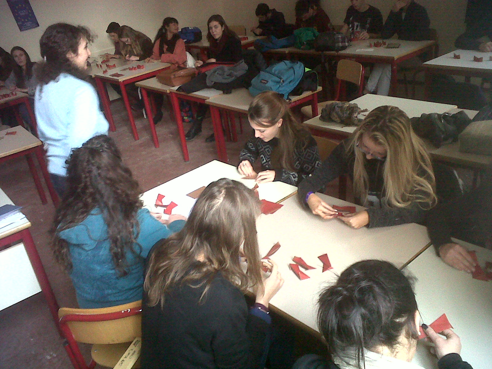 Lei e gli studenti del Liceo hanno confezionato origami per la Festa FTF di Natale del Liceo Europeo Altiero SPinelli di TOrino; gli acquirenti, genitori ed allievi, hanno apprezzato le opere di carta, capaci di comprenderne il “valore aggiunto”: ogni acquisto ha infatti contribuito alla raccolta fondi finalizzata all’ attivazione di un affido a distanza di un bambino africano affetto da malnutrizione, tramite l’associazione Nutriaid). Anche i giochi hanno fatto la loro parte…. Insomma, il 18 dicembre del 2013, allo “Spinelli”, Natale si e’ dimostrato concretamente che una festa di solidarieta’ e’ anzitutto un’ occasione per stare insieme e per condividere: sorrisi, auguri…eE progetti che possono “diventare grandi”, grazie alla collaborazione di tanti.