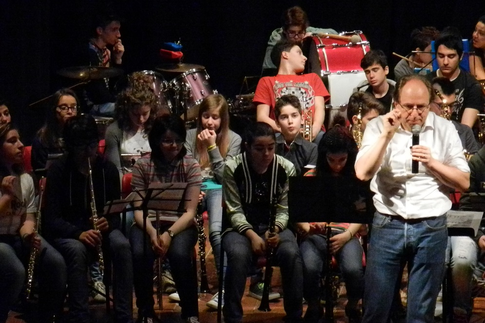 In quell’occasione la Band della scuola, gli “Acchiappanote“, ha avuto l’onore di essere diretta dal Maestro Agiman durante un Concerto nel locale Teatro Verdi.