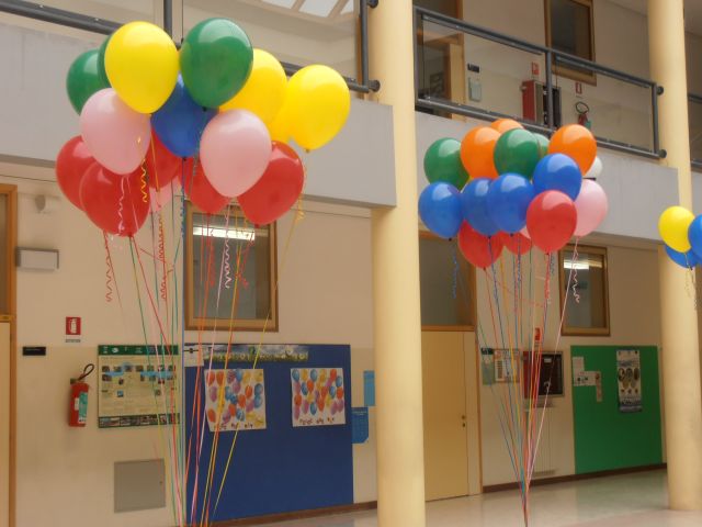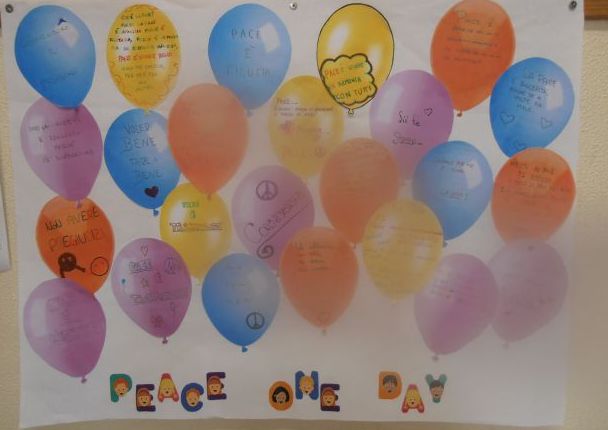 Le porte delle aule si aprono, palloncini colorati aspettano di essere addobbati con fili di lana ricchi di “pace”e di essere portati all’aperto nel cortile.