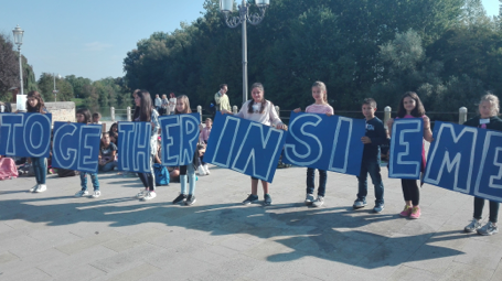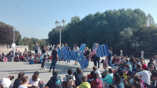 Scopo dell’iniziativa era far vivere ai ragazzi l’importanza della parola TOGETHER – INSIEME, proposta dall’ONU come motto dell’evento mondiale: attraverso varie attività, giochi e canti gli studenti delle classi prime sono stati coinvolti nell’idea di vivere il proprio territorio come “territorio di pace”, di incontro, di dialogo: hanno riscoperto la bellezza di prendersi cura gli uni degli altri e dell’ambiente che li ospita.